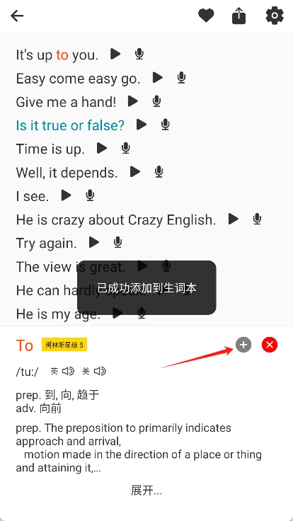 将不熟悉的单词添加到生词本中。