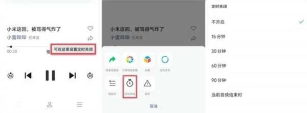 定时关闭按钮原本在右侧,现在被收进了分享菜单里,需要点击分享按钮才能找到定时按钮。