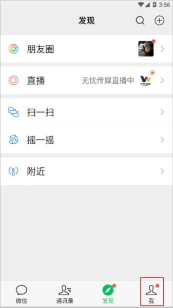 打开手机后,找到微信图标并点击,待微信启动进入主界面,在底部导航栏找到“发现”选项并点击,进入发现页面后,在界面上方即可看到“朋友圈”,具体位置如下图所示。