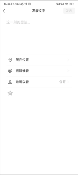 打开朋友圈后,在弹出界面的右上角能看到相机图标。通常发布朋友圈时只需单击这个相机图标,要是想发纯文字朋友圈,就用单指长按该相机图标,具体操作可参考下图: