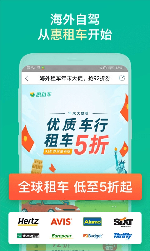 惠租车是个十分便捷的海外自驾租车平台,和国外不少国家及城市的租车门店都有合作,能让我们轻松体验海外无忧自驾的快乐。而且不用担心语言沟通的问题,因为平台提供全天候的中文客服支持,能帮忙解决租车过程中碰到的各类问题。另外,它还支持使用中国驾照,也经常推出各种优惠活动。要是不清楚路线,还可以查看详细的自驾攻略呢!