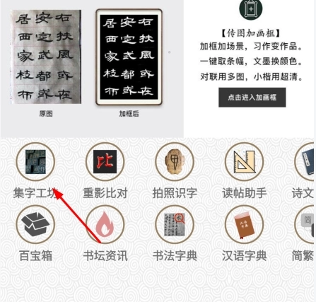 我们需要在首页打开“集字工坊”功能。