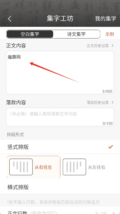 输入需要集字的内容,选择首选及备选字体。