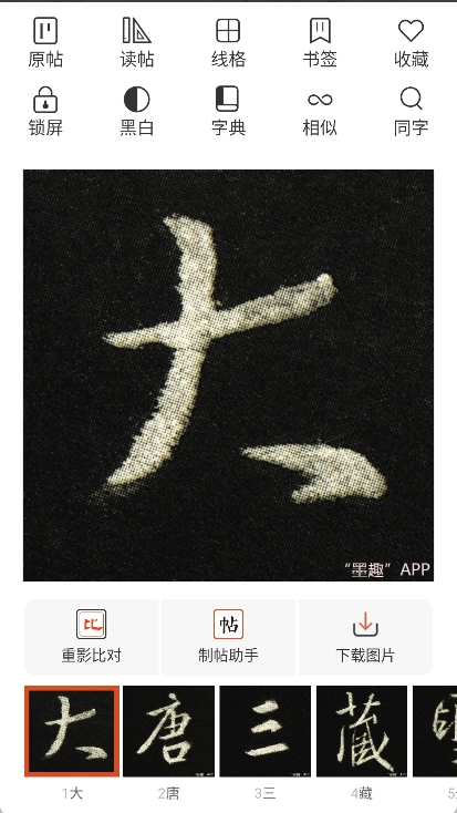 重影比对:通过扫描临写的字与碑帖中的范字进行重影叠加比对,精准找出二者间的差距,从而有效提升书法练习水平。