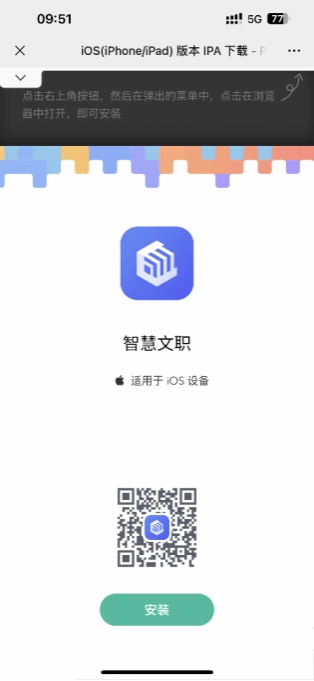 请用 Safari 浏览器打开安装链接或者扫描二维码进行安装。这里要特别提醒您,一定要使用 Safari 浏览器,原因是其他浏览器可能无法支持直接安装该应用。