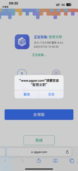 在 Safari 浏览器打开的安装页面里,你能看到应用的详细信息以及一个“安装”按钮。点击该“安装”按钮后,系统会弹出安装确认提示框,此时再点击“安装”即可。