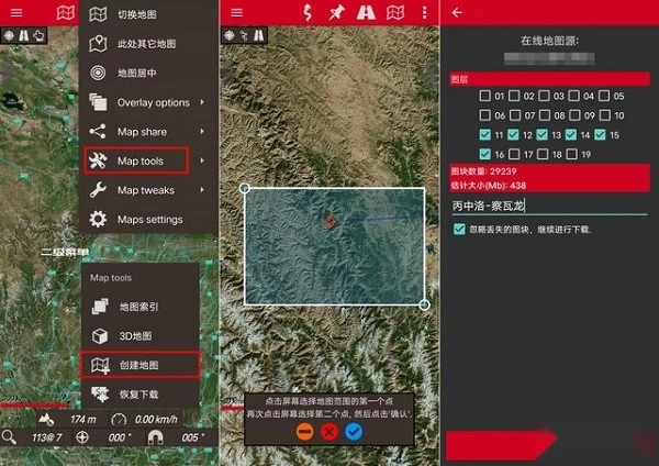 本地地图具备格式转换功能,能将OZI格式地图(OZI里的全中国地图信息十分详尽,连众多小路都清晰标注)转换为OruxMAPS格式;同时,相关软件可把在线地图制作成本地地图,这类本地地图还支持根据地图级别自动切换——比如存在15级谷歌地图和16级谷歌地球时,当放大到15级地图,系统会自动切换至16级的谷歌地球。