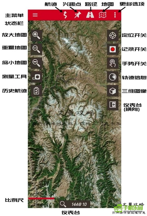 上面这张图展示的是Oruxmaps的基础界面,在这个界面里有几个比较常用的功能:定位开关、记录开关、手势开关、测量工具,还有菜单里的航迹、路径和地图选项。从这个界面开始,就进入软件的正式操作界面了。首先可以试着点击右侧的“定位开关”,看看软件能不能正常工作——要是屏幕中心出现红色箭头,就说明软件运行没问题。不同版本的主界面可能会有一些小差异,但主要功能都是差不多的,不用太纠结是不是最新版本,6.x到7.x的版本都能正常使用(8.x版本还没测试过)。