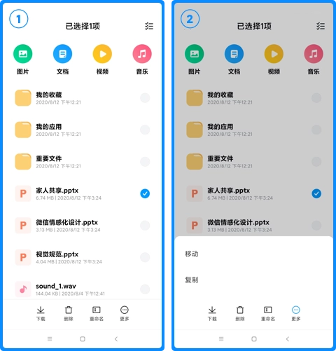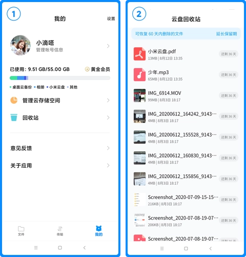 在“云盘”里删除的文件能在“回收站”中找回。您可依据需求,对文件执行“恢复”或者“彻底删除”操作。
