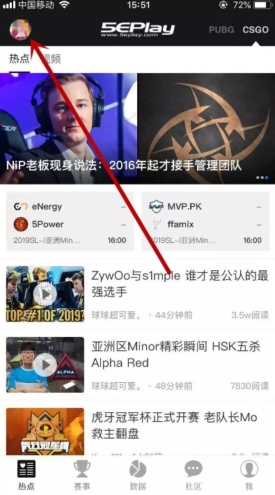 点击左上角头像