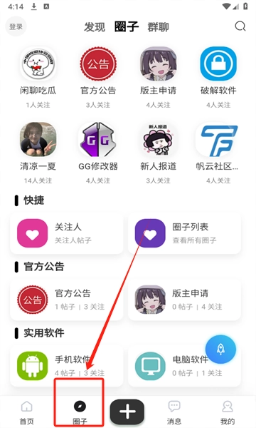 “圈子”这里面有许许多多的话题圈等着你来参与