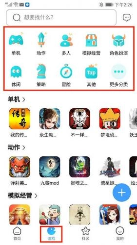 4、进入【游戏界面】,用户可以在这里搜索和下载需要的游戏mod资源。分为【单机】、【动作】、【多人】、【模拟经营】、【角色扮演】、【休闲】等类型的游戏,也可以在上方【搜索框】输入需要的游戏名称进行查找。