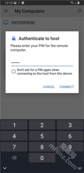 点击需要访问的远程桌面,输入PIN码,确认无误后即可启动远程操作。