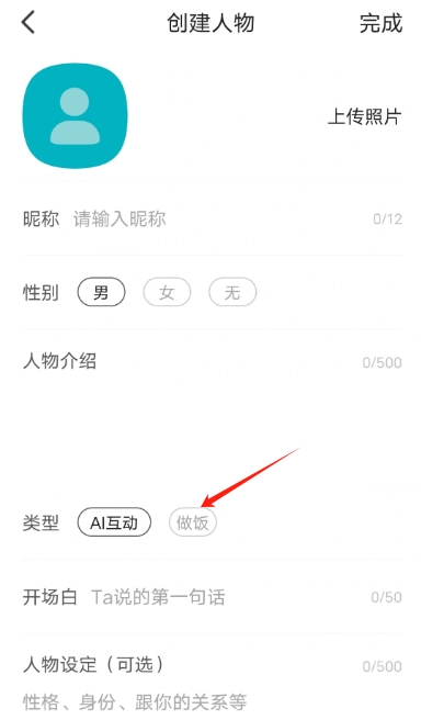 Talkmaker开启做饭模式的操作很简单,在创建人物聊天时,只需在类型选项中选择“做饭”就能进入。要是类型选成了“ai互动”,就无法进入做饭模式了。不少网友不清楚Talkmaker的做饭功能藏在哪里,其实这个功能就在创建人物界面的类型选择区域。