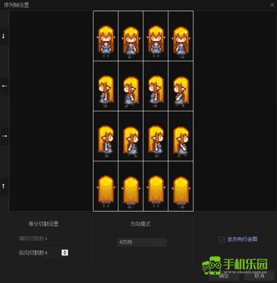 行走图是多数模板都具备的功能。导入行走图素材时,能自由挑选任意方向、任意帧数,参数设置完毕后就能一键生成对应各个方向的行走图;也可以把单张图片添加到某一帧的后面。