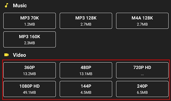 点击视频上方的图标,选定需要的分辨率与格式即可操作。