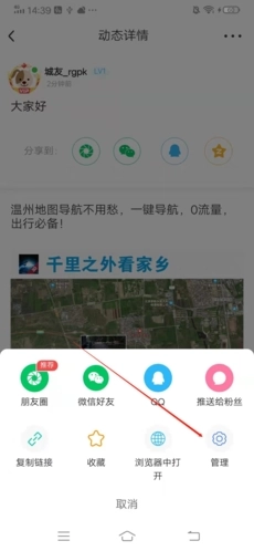 选择删除选项:在弹出的菜单里找到右下方的【管理】选项并点击,接着点击【删帖】。