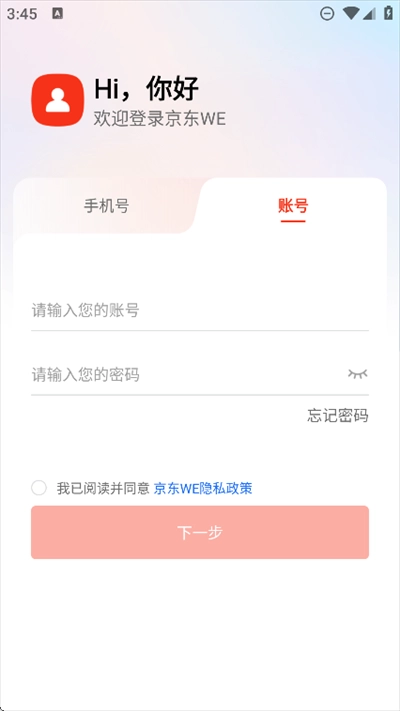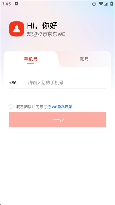 打开进入京东WE软件,点击同意隐私协议