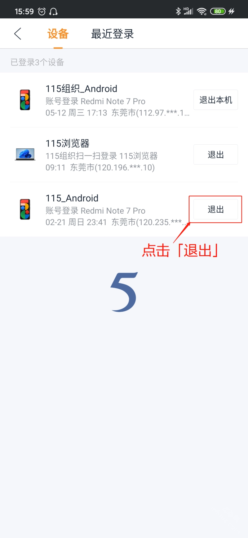 在这里,您能够查看当前账号的所有登录设备信息。要是想退出某台设备,仅需点击该设备右侧的「退出」按钮即可。