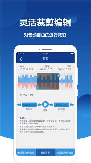 能够对音频内容进行灵活的微调与裁剪,从而得到自己需要的音频片段。