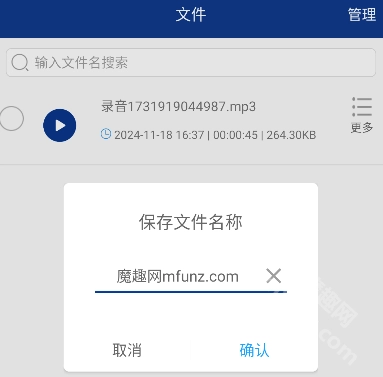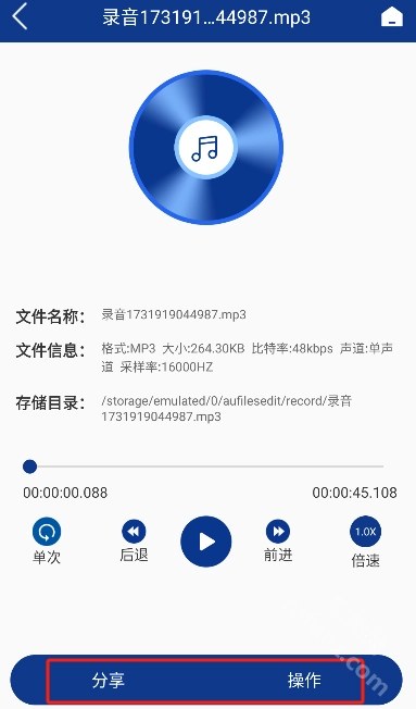 保存后可以对录音文件进行分享或者其他操作。
