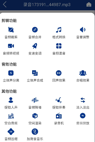 可以对提取和裁剪后的音频文件进行分类与统一管理,同时支持以多种方式将音频文件分享给好友。