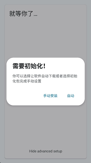 安装完成后启动程序,启动时请关闭WiFi功能,此时Vetras VM会弹出配置窗口,您选择“手动安装”选项即可。