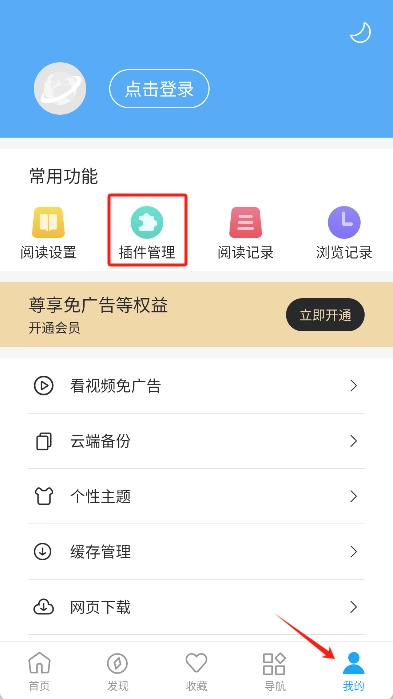 马上打开应用,在“我的”页面里找到并点击“插件管理”选项,进入插件菜单。