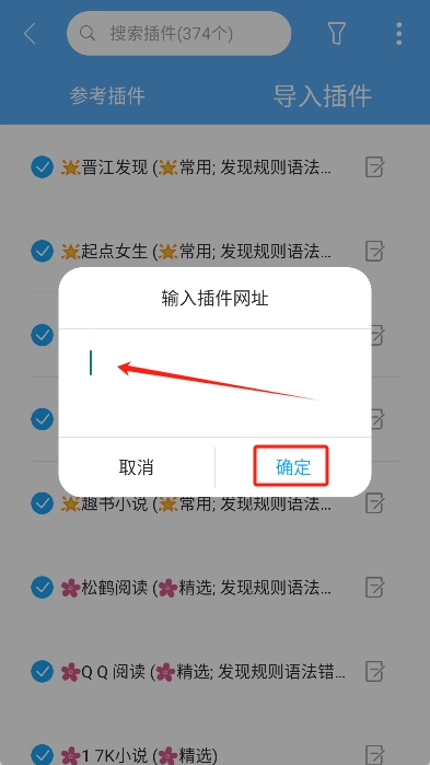 在窗口内长按文本框粘贴书源地址,接着点击确认按钮,系统便会自动导入书源。
