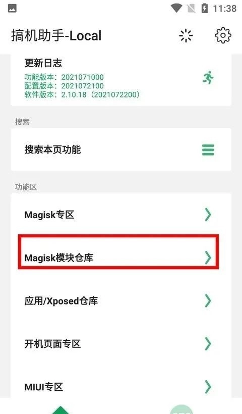 在本站安装搞机助手Local后,在功能区找到magisk模板仓库并点击进入。