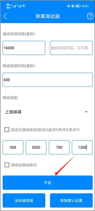 把模拟生成的坐标录入软件,接着点击“开启”按钮。