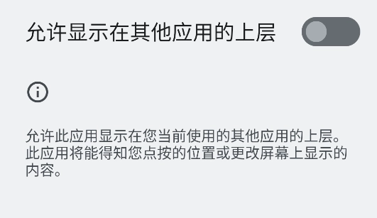 授权权限:确保已获得“允许显示在其他应用的上层”权限,如果未授权系统会提示你进行授权,按照提示完成操作。