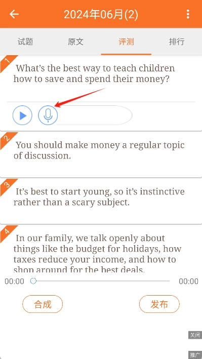 也可以选择原文进行点播,即刻收听,用于听力训练。