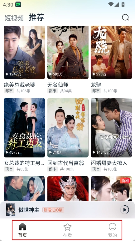 【海量短剧】这里有各种各样的短剧可以免费观看,内容包含都市激情、现代浪漫、时代逆袭等丰富多样的主题。