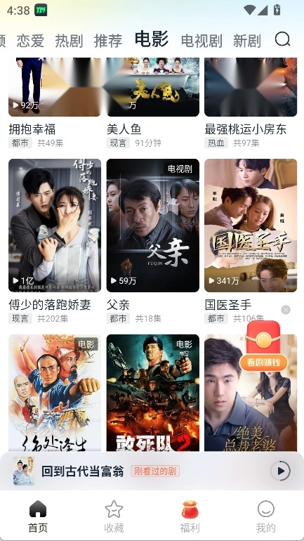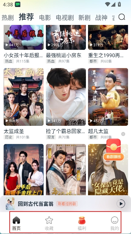 使用之后,底部会显示【首页】、【收藏】、【福利】和【我的】这些选项。