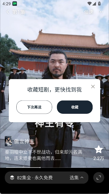 随便点击一个短剧就能进入观看页面,这时可以对这部短剧进行收藏之类的操作。