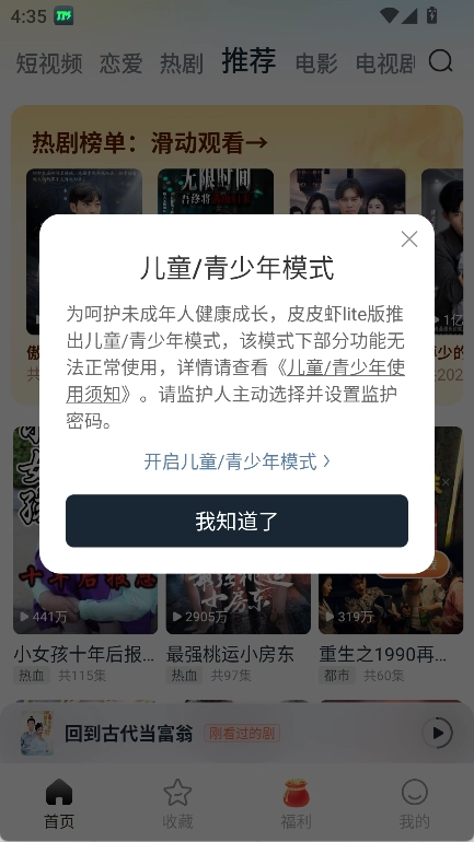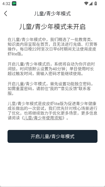 设置里可进行儿童/青少年模式设置。