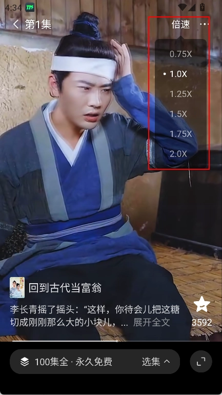 右上角可以选择倍速播放。