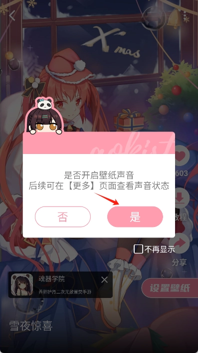 在弹出的弹窗中同意开启壁纸声音。