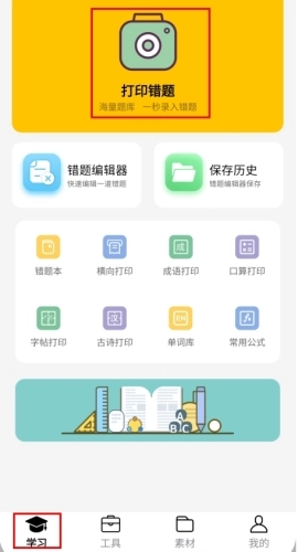 然后在首页页面中点击“打印错题”按钮。