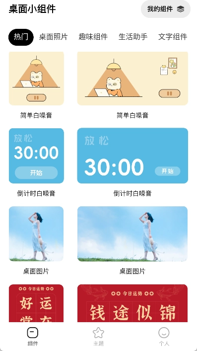桌面小组件是一款兼具实用性与美观性的手机桌面美化工具,能让我们自由打造专属的桌面环境。它涵盖时钟、天气预报、日历、备忘录等生活各方面的功能模块,我们可根据日常使用习惯按需添加。此外,还能对小组件的外观进行个性化定制,像字体、背景等都能自由设置。添加到桌面后,我们还能轻松拖动调整位置、改变大小!