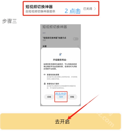 打开短视频切换神器后,点击去开启