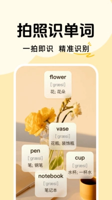 拍照记单词是一款极具个性化的掌上背单词利器,能帮助大家更高效地记忆单词。这款手机应用依托强大的AI技术,可精准识别图片中的英语单词,同步提供发音与释义。无论是街头见闻还是餐厅场景,随手拍下的每一张照片都能成为学习素材,让英语学习自然融入日常生活,实现随时随地轻松记单词!