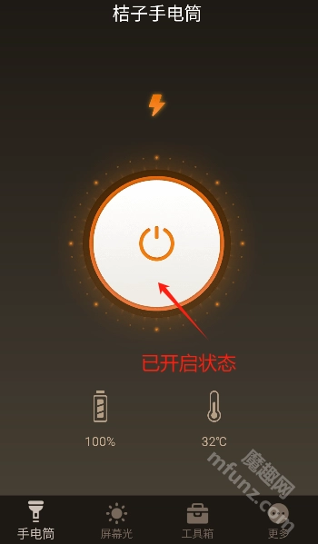 如果想要开闭手电筒,则直接点击关机按钮即可。