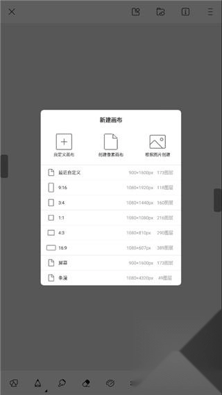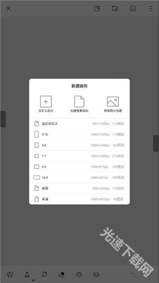 新建画布时,既可以自定义画布参数、创建像素画布,也能够依据图片来生成画布。