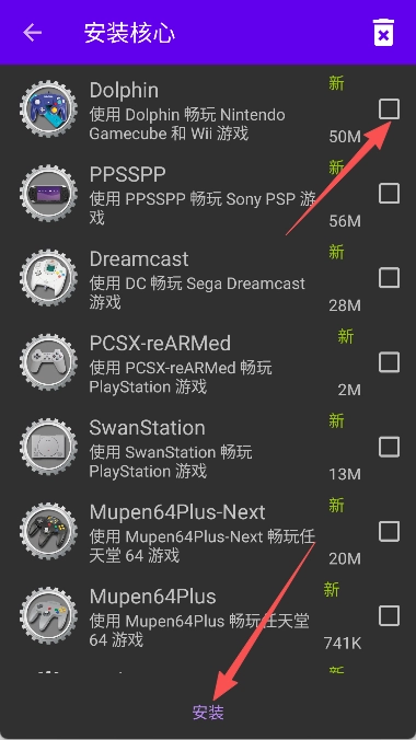 你需要挑选符合自身需求的核心,把它勾选上之后,再点击“安装”按钮。