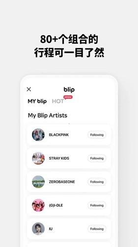 Blip是一款专为KPOP追星族设计的手机互动平台,能让大家更便捷地关注自家爱豆,及时获取偶像相关的各类活动信息。要是想了解当下最新的明星新闻、照片、帖子等内容,上Blip平台就能查看,就连音乐会门票的发售动态也能知晓。此外,我们还可以给偶像发私信、留言,或是和其他粉丝交流互动,一起为喜欢的明星应援!