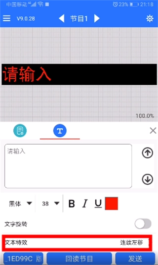 led魔宝显示屏是一款操作便捷的LED显示屏控制软件,能让我们在手机上轻松操控LED屏幕。和LED屏幕连接成功后,就可以编辑内容,不过发送前最好先预览一下效果。软件还提供了彩虹、流水等丰富的动态效果,在播放内容时添加这些效果,能大大提升吸引力!