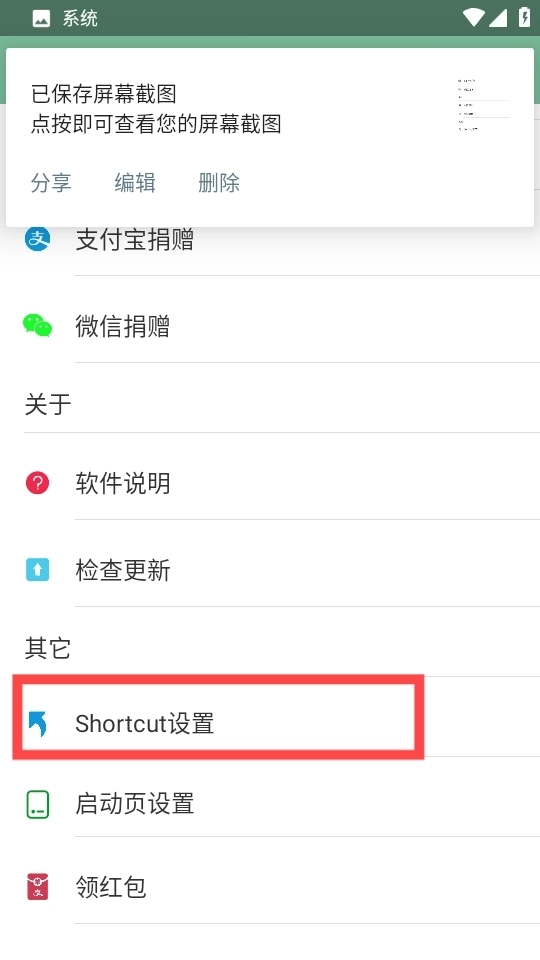 2、接着找到“Shortcut设置”,如图所示。