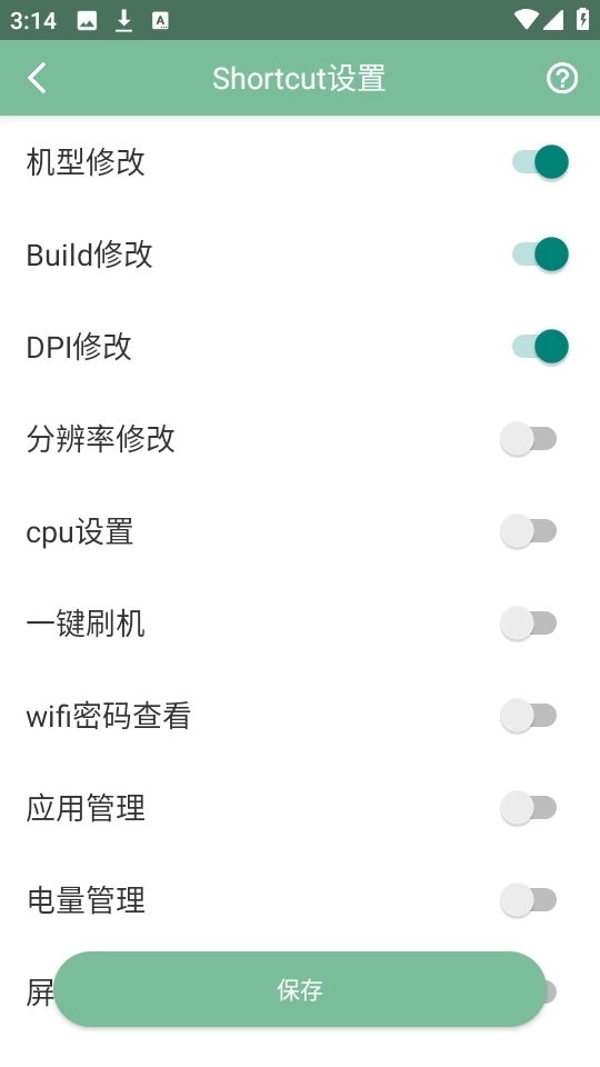 2、首页包含了电量管理,自动点击,屏幕旋转,cpu设置等多种功能模式。
